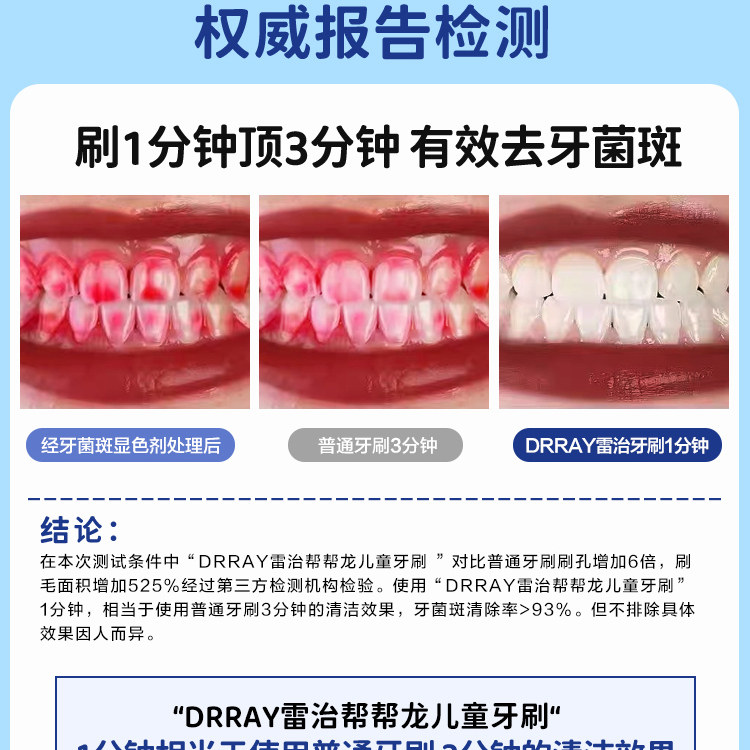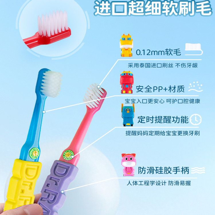 Dr.RAY雷治 6岁换牙期牙刷 帮帮龙系列宝宝儿童牙刷护龈超细软毛3