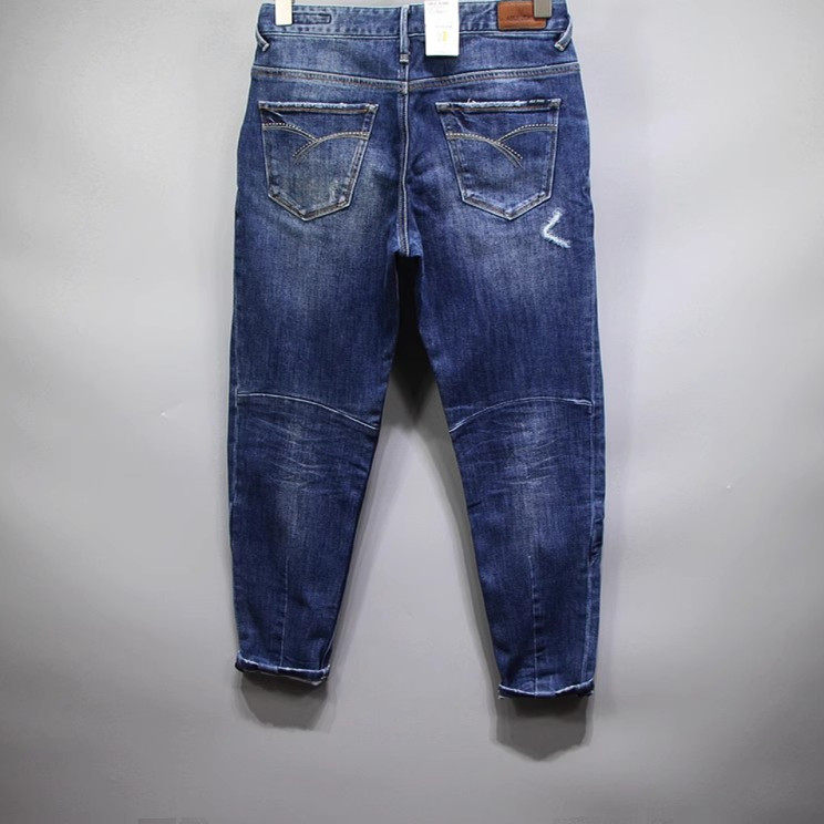 原牛蓝阔腿裤 」松紧腰丹宁加绒弯刀牛仔裤 X3「遛狗裤 化学少女