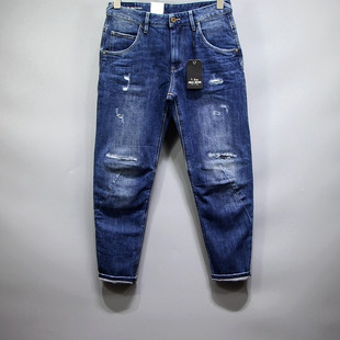 海王日记A字原牛个性 硬挺激光烧花提花拼接直筒显高牛仔裤