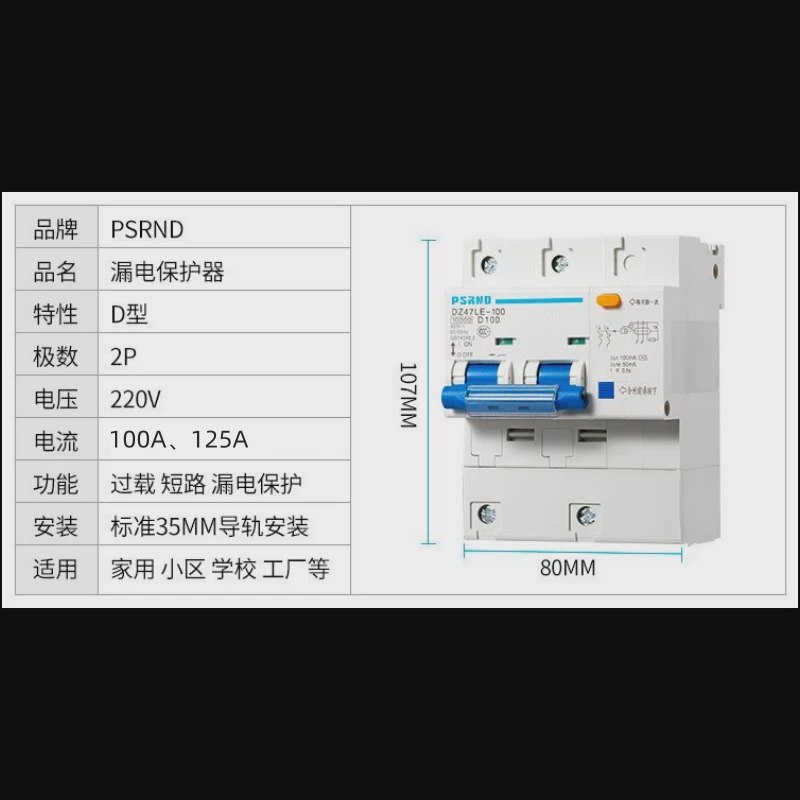 德力西空气开关断路器家用漏电保护器2P63a电闸总空开带漏电保护