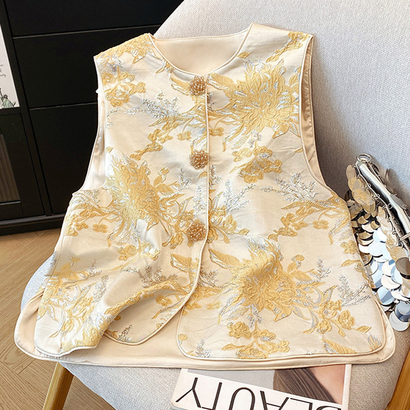 马夹无袖 高级感唐装 上衣重工国风提花坎肩 马甲背心女款 开春新中式