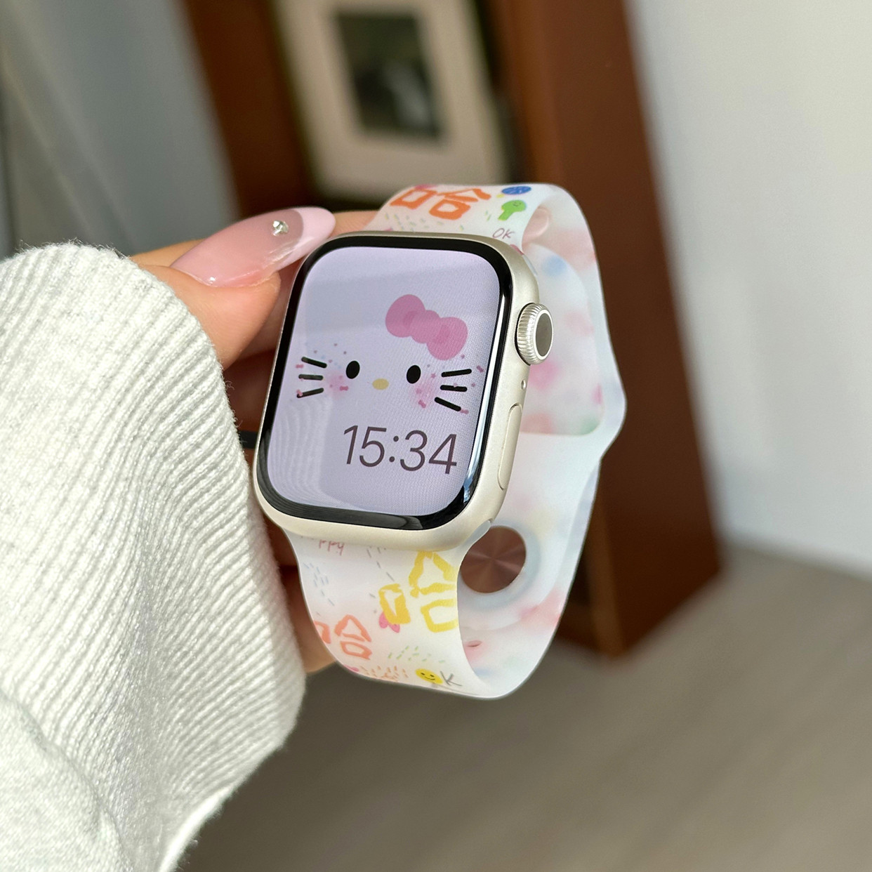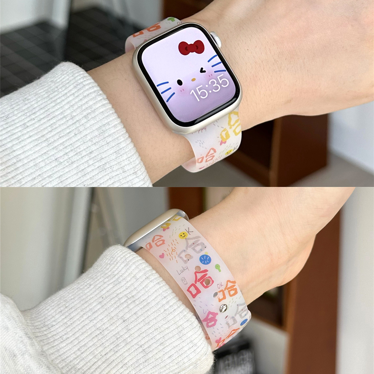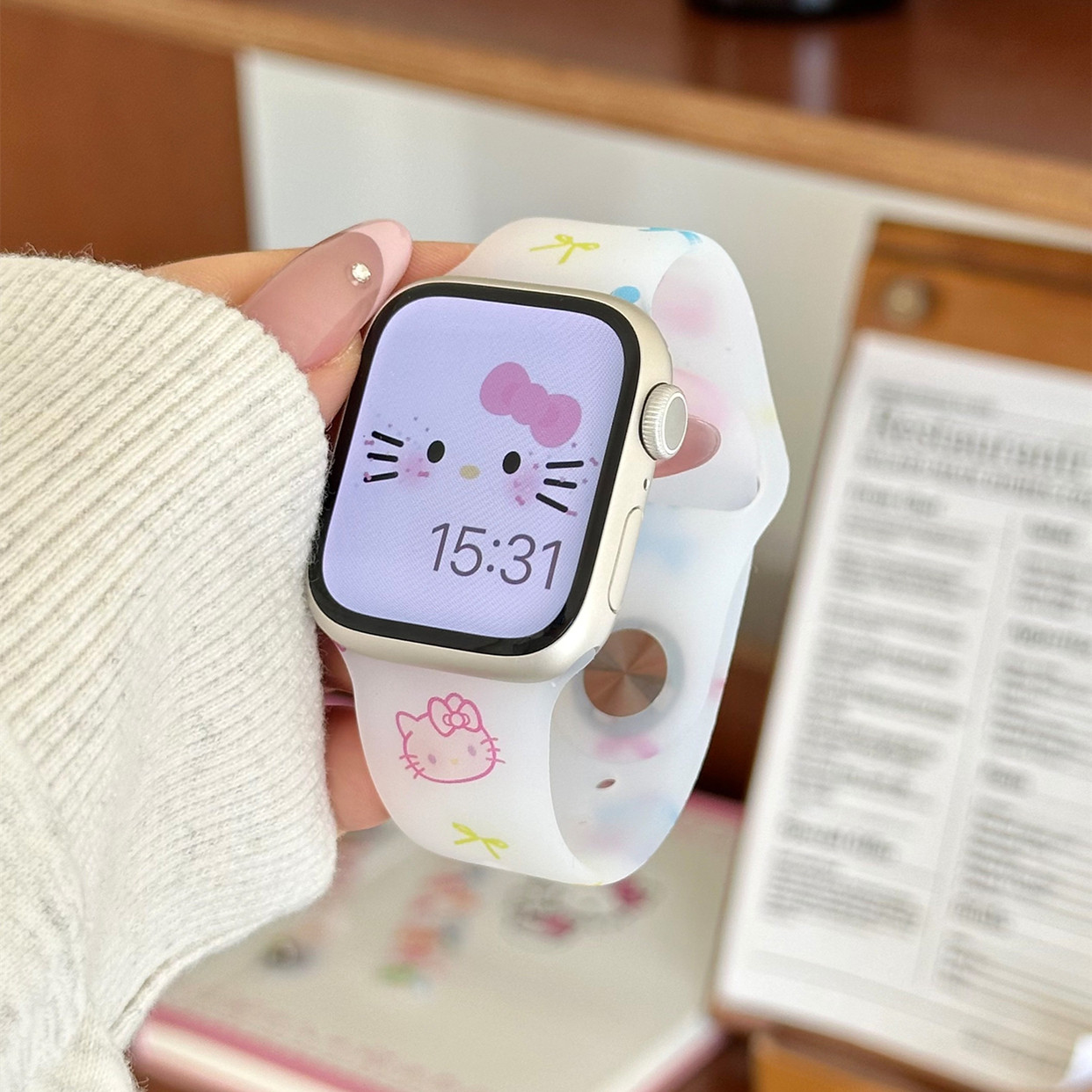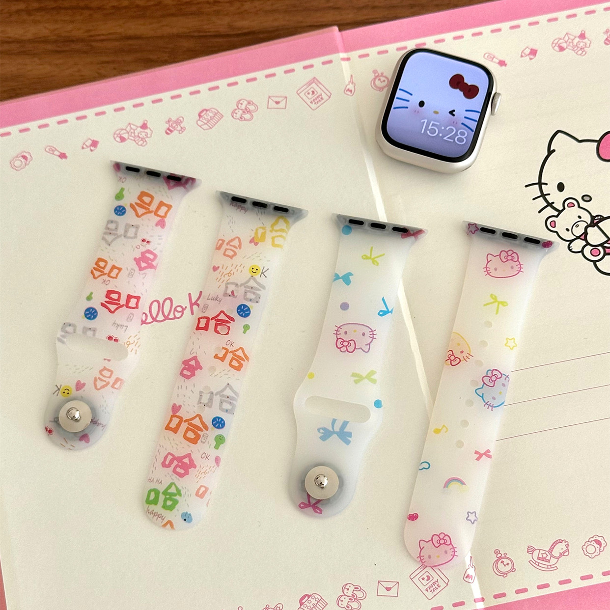 适用苹果手表s11代iwatch磨砂透明KT猫硅胶表带applewatch98765se