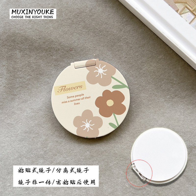冷淡风花朵翻盖补妆镜子手机支架粘贴式 懒人通用支撑简约支架女生