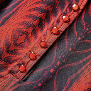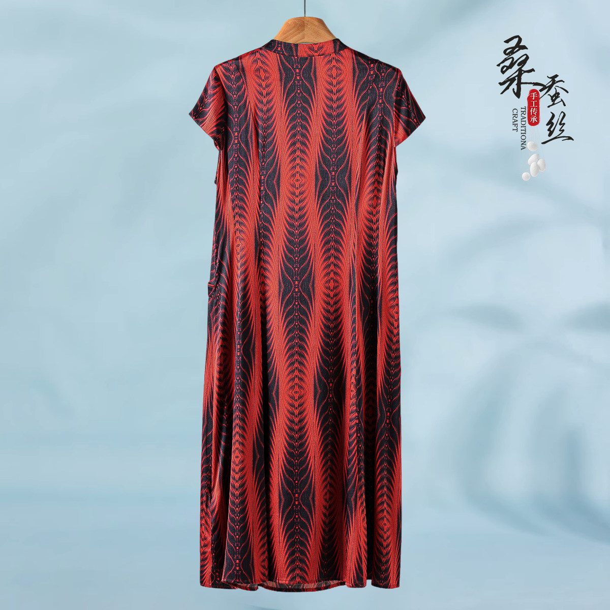 夏装 古 糖果色排扣V领印花真丝连衣裙196弜 90%桑蚕丝 1788