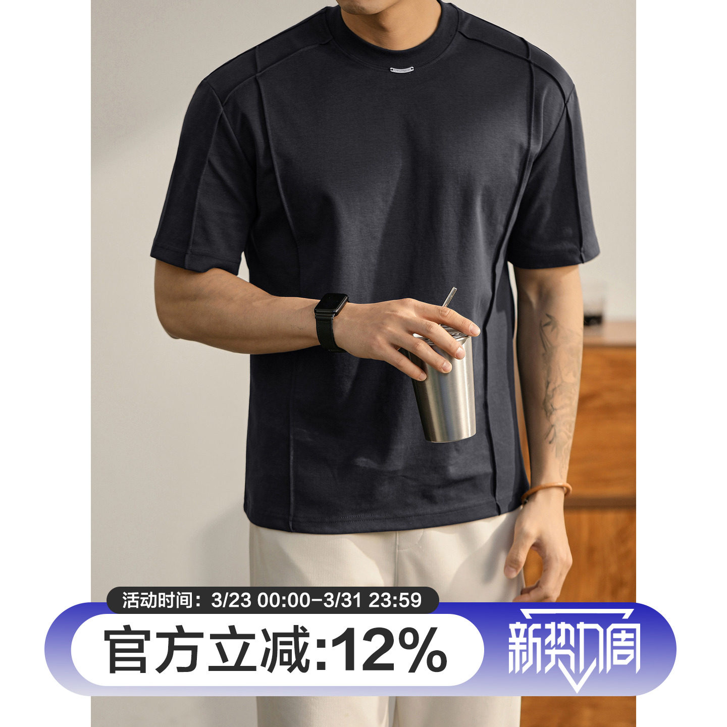 双面冰爽棉舒适短袖 分割线圆领T恤夏季 都市休闲百搭上衣 男士 LUUD