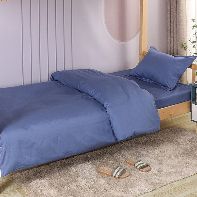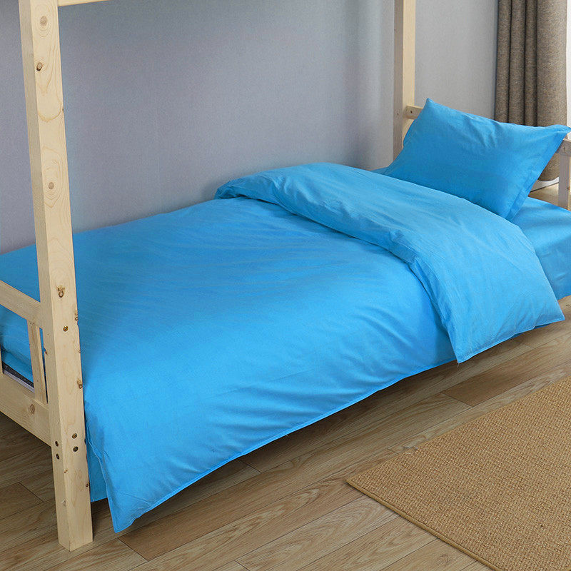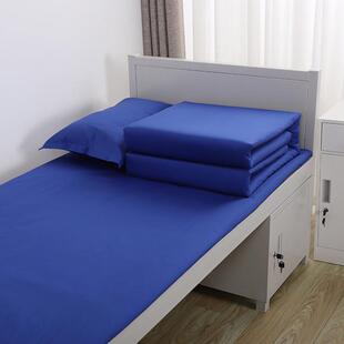 tuf4蓝色三件套床单被套学生宿舍靠蓝色单位单人床上用品定制印