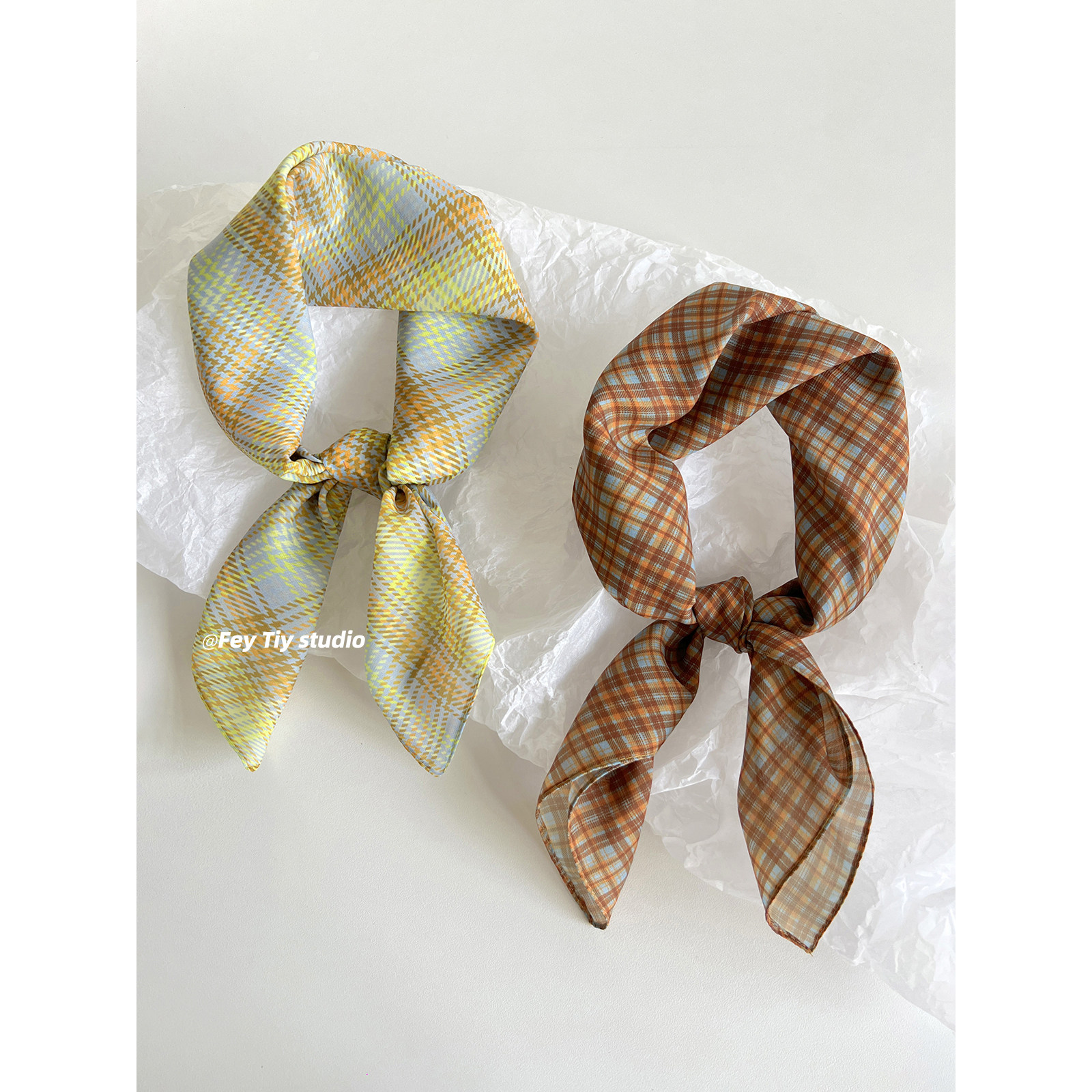 艺术生搭配单品丝巾头巾裹胸新款 夏季 方巾女 千禧迷幻格子 feytiy