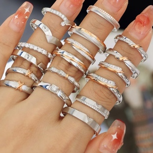 18K14k金婚戒 铂金950对戒情侣戒 天然钻石培育钻铂金850轻奢刻字