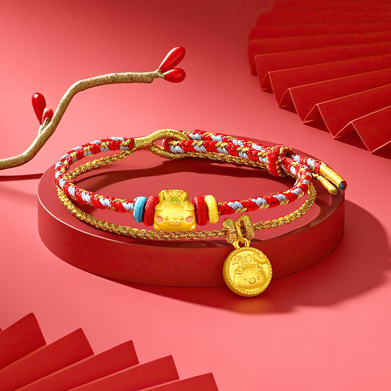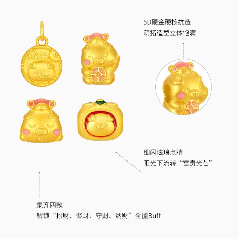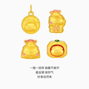潮宏基好事发生聚财足金转运串珠黄金吊坠发财猪硬金生日礼物