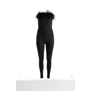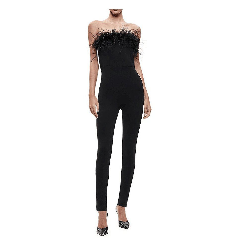 alice 黑色 oliviaalice Idell羽毛镶边连身裤 美 olivia 自营