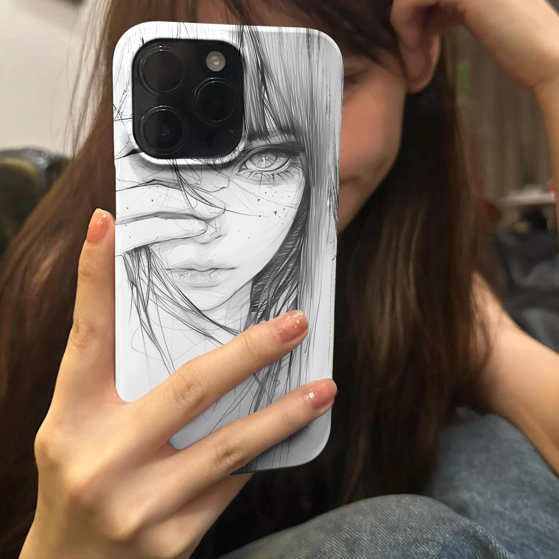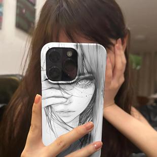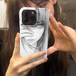 素描少女适用苹果16promax手机壳iphone14pro新款 13艺术12漫画11保护套15promax全包防摔x硅胶xr软壳xsmax女