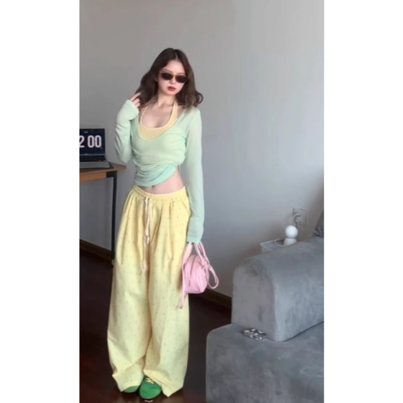长袖 大码 防晒罩衫 薄款 t恤两件套潮 胖mm挂脖设计感吊带背心女夏季