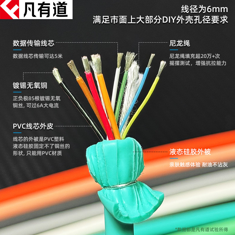 DIY液态硅胶线8芯6A手机数据快充线适用于华为小米vivo苹果iPhone手机OPPO线径6mm四芯粗线高导电无氧铜240W