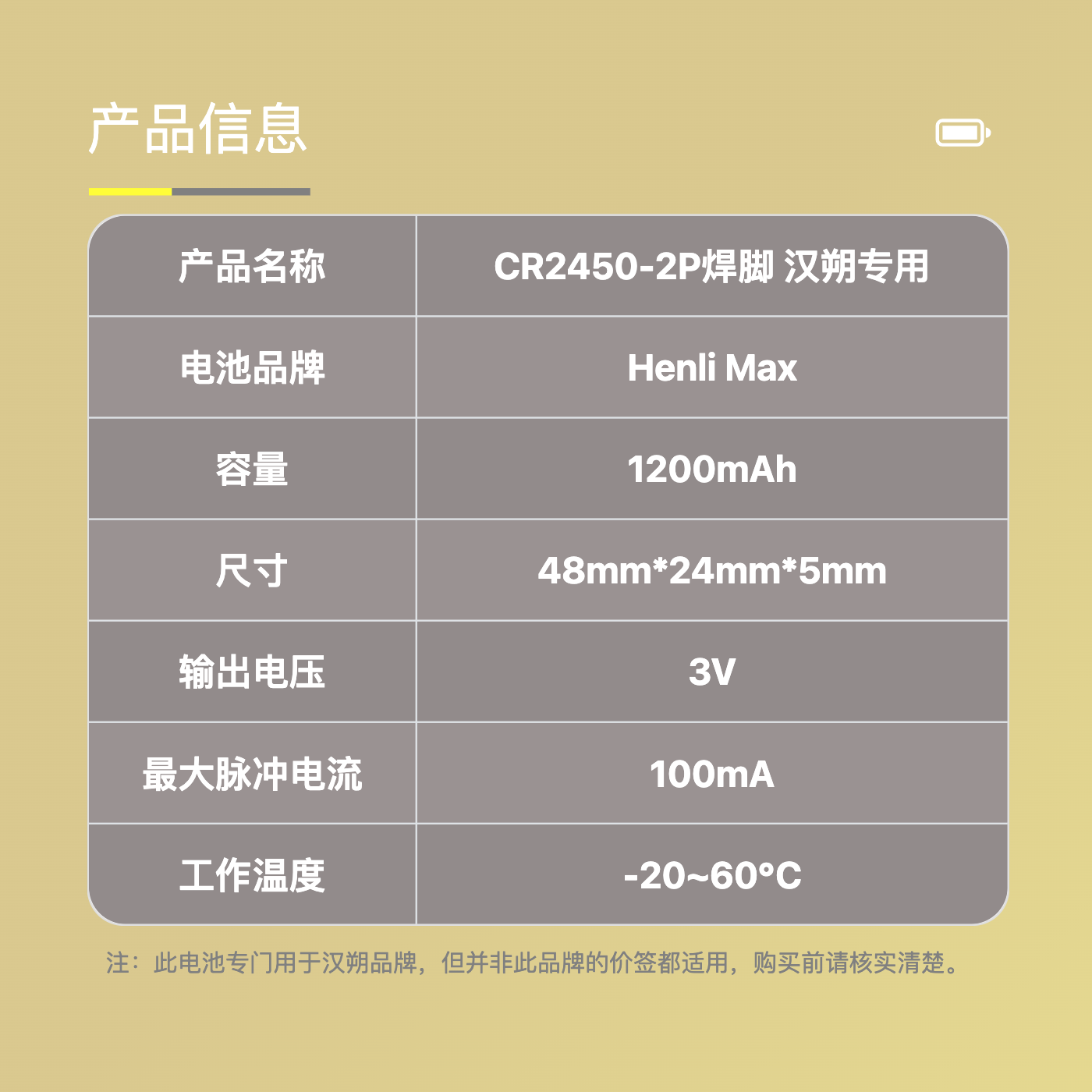 CR2450焊脚纽扣电池组汉朔Hanshow电子价签专用stellar系列m3n