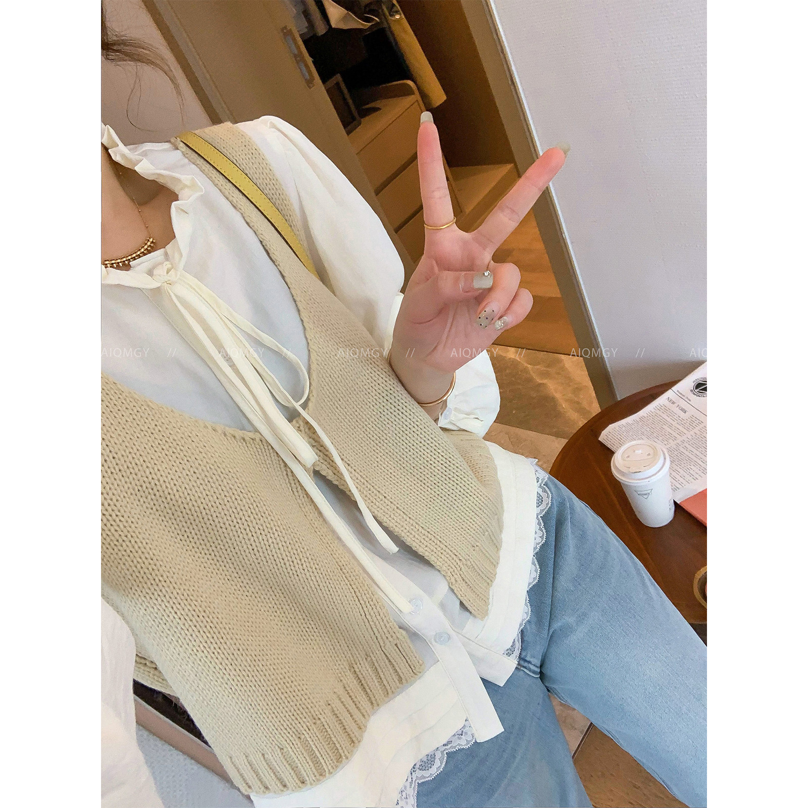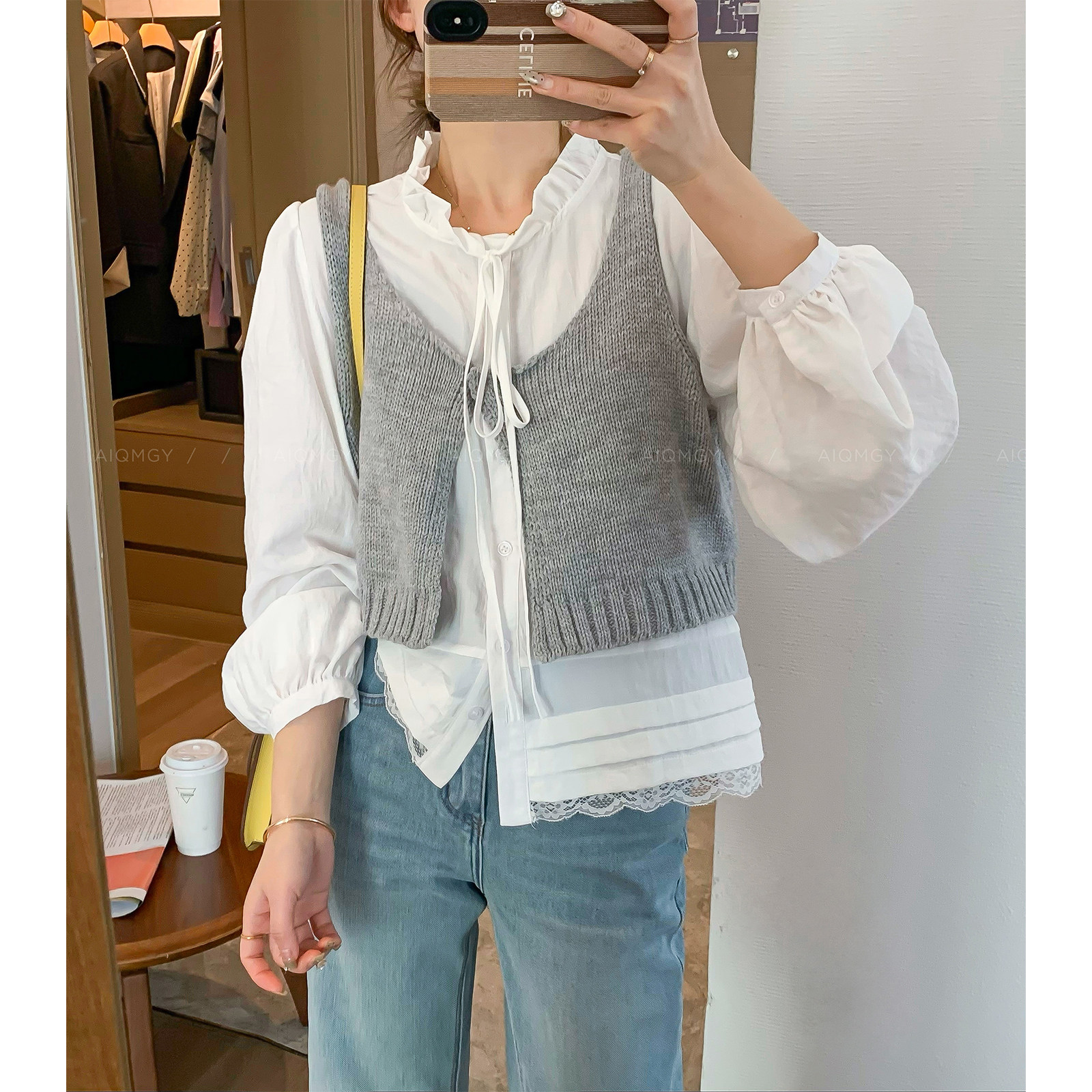 时尚 蕾丝拼接衬衫 套装 新款 叠穿马甲两件套 女2026春季 爱情魔鬼鱼
