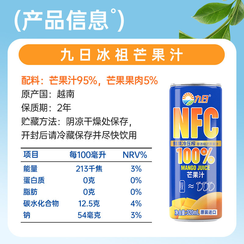九日越南进口nfc芒果果肉果汁320ml 直播专享价