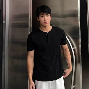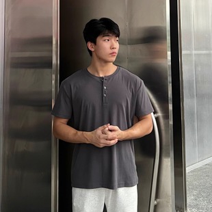 休闲短袖 T恤纯色阔肩显壮透气夏季 230g复古高弹亨利衫 ULTISO本源