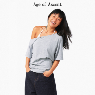 散步露肩短袖 Age 慵懒感斜肩短袖 Ascent T恤女设计感小众上衣