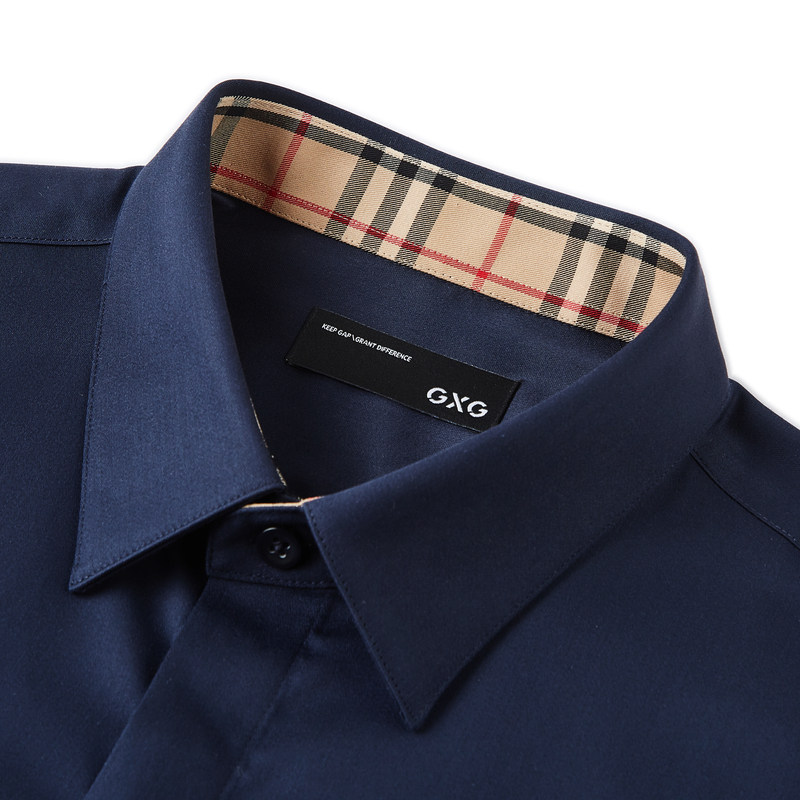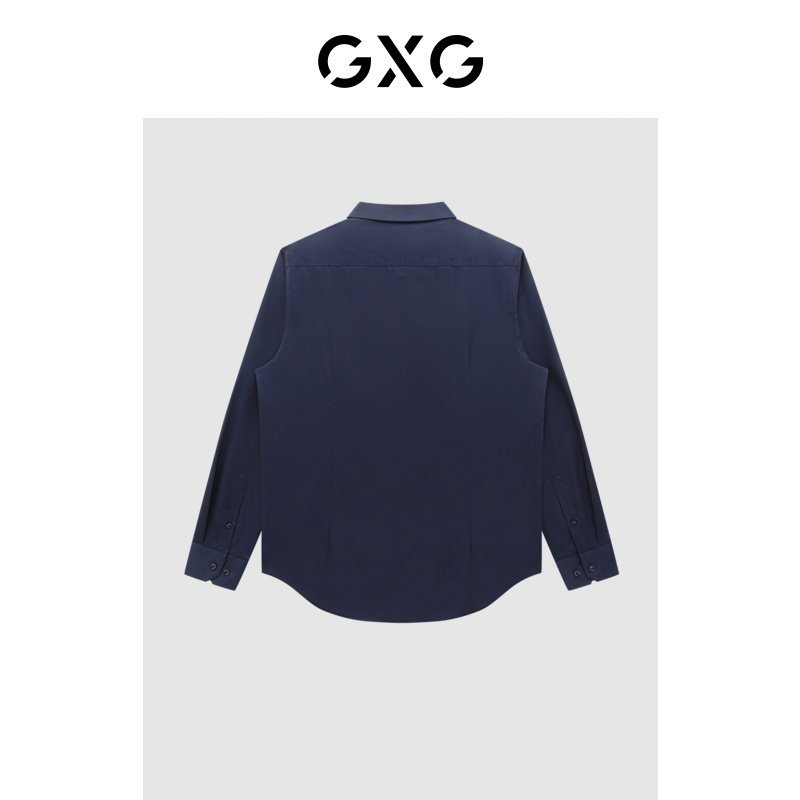 新品 GXG男装 2023年春季 衬衫 藏青色通勤免烫商务长袖