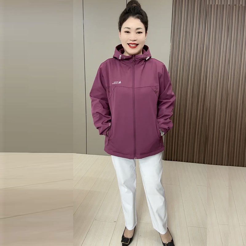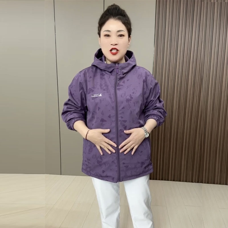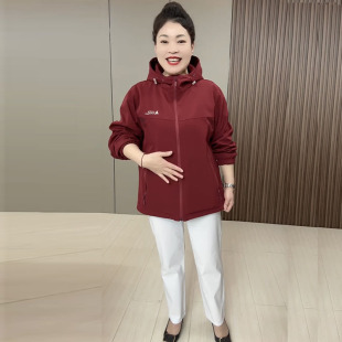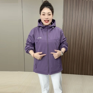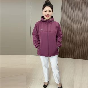 时尚 大码 新款 2025春季 洋气两面穿上衣休闲百搭连帽冲锋衣外套 女装