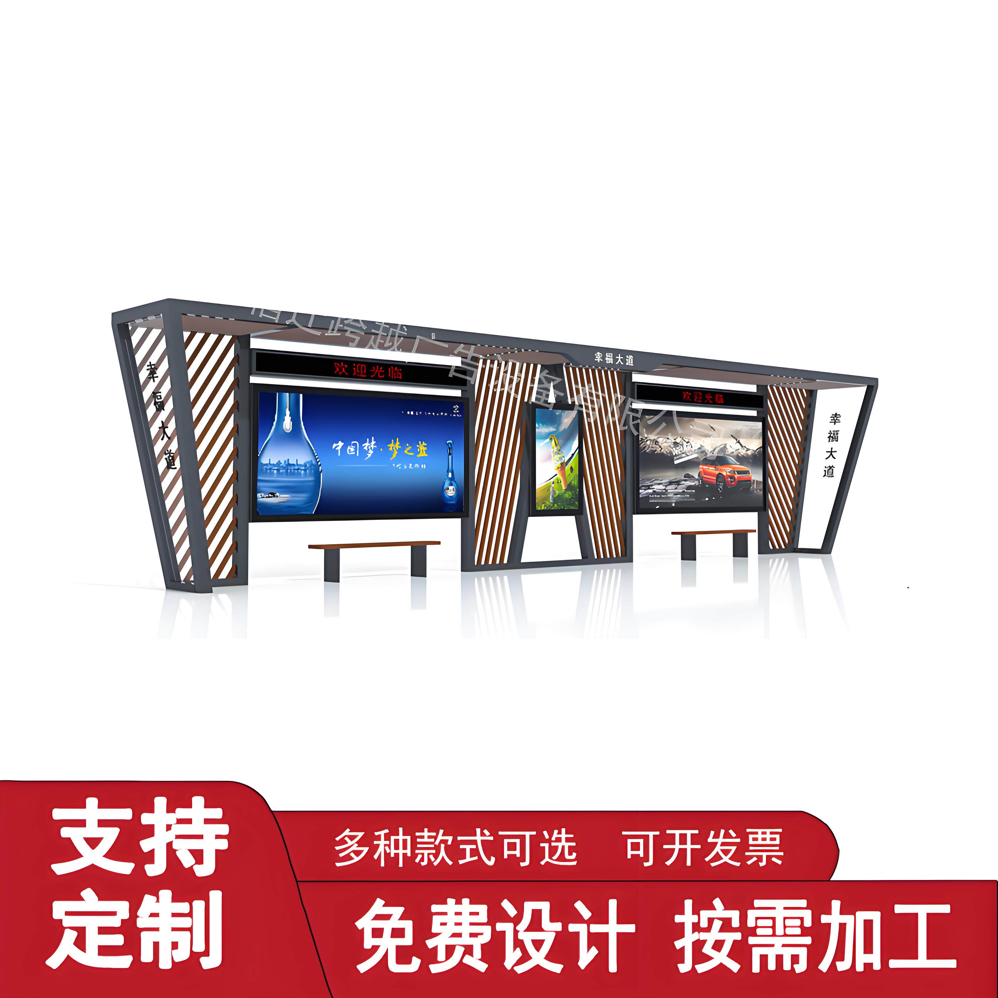 停靠站巴士站台公交站亭乡镇城市滚动灯箱候车点不锈钢候车亭厂家