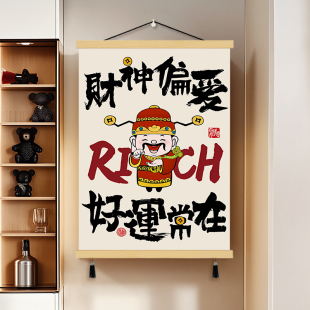 指谁谁发财挂画创意财神办公室装 饰画艺术壁画奶茶美甲店墙遮挡画