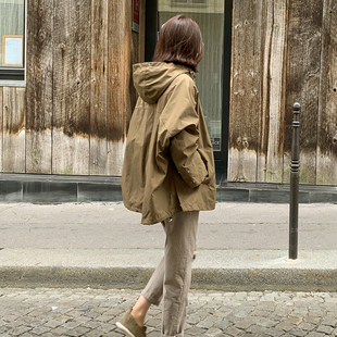 连帽风衣外套中长防泼水显瘦大码 D36韩国女装 斗篷宽松秋冬九分袖