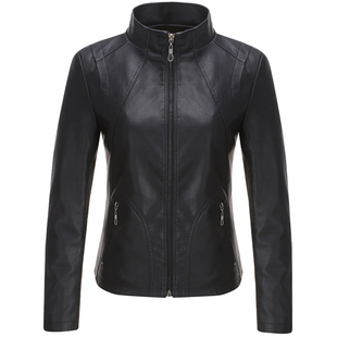 美式 修身 复古皮夹克上衣皮衣外套 复古朋克少女短款 eihey诶嘿春季