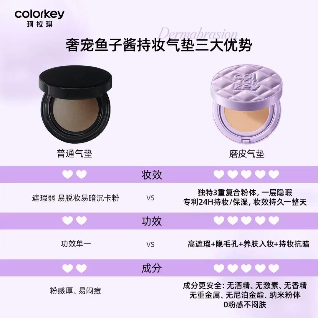 Colorkey珂拉琪奢宠磨皮鱼子酱持妆气垫霜遮瑕控油轻薄不易脱妆女