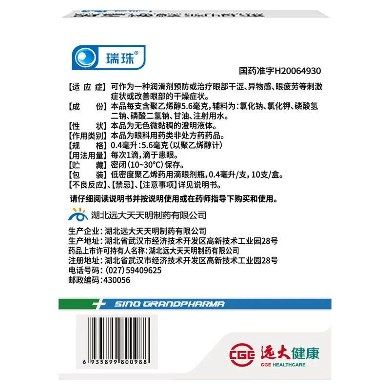 0.4ml 1.4% 18支 盒 眼部干涩 居安诺 用于异物感 聚乙烯醇滴眼液