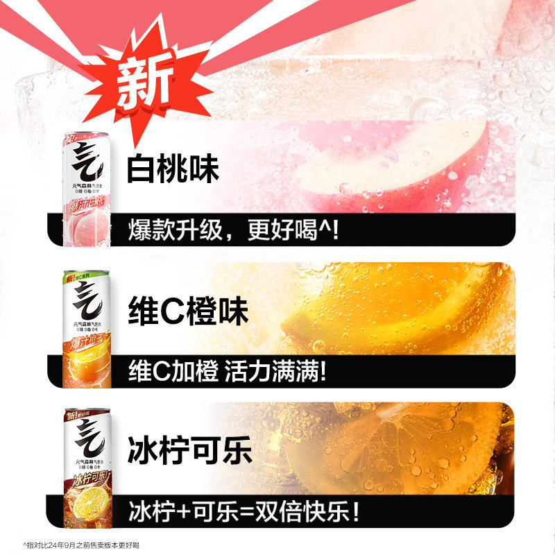 元 6罐冰柠可乐白桃维C橙饮用橙味 气森林0糖0卡可选气泡水330ml