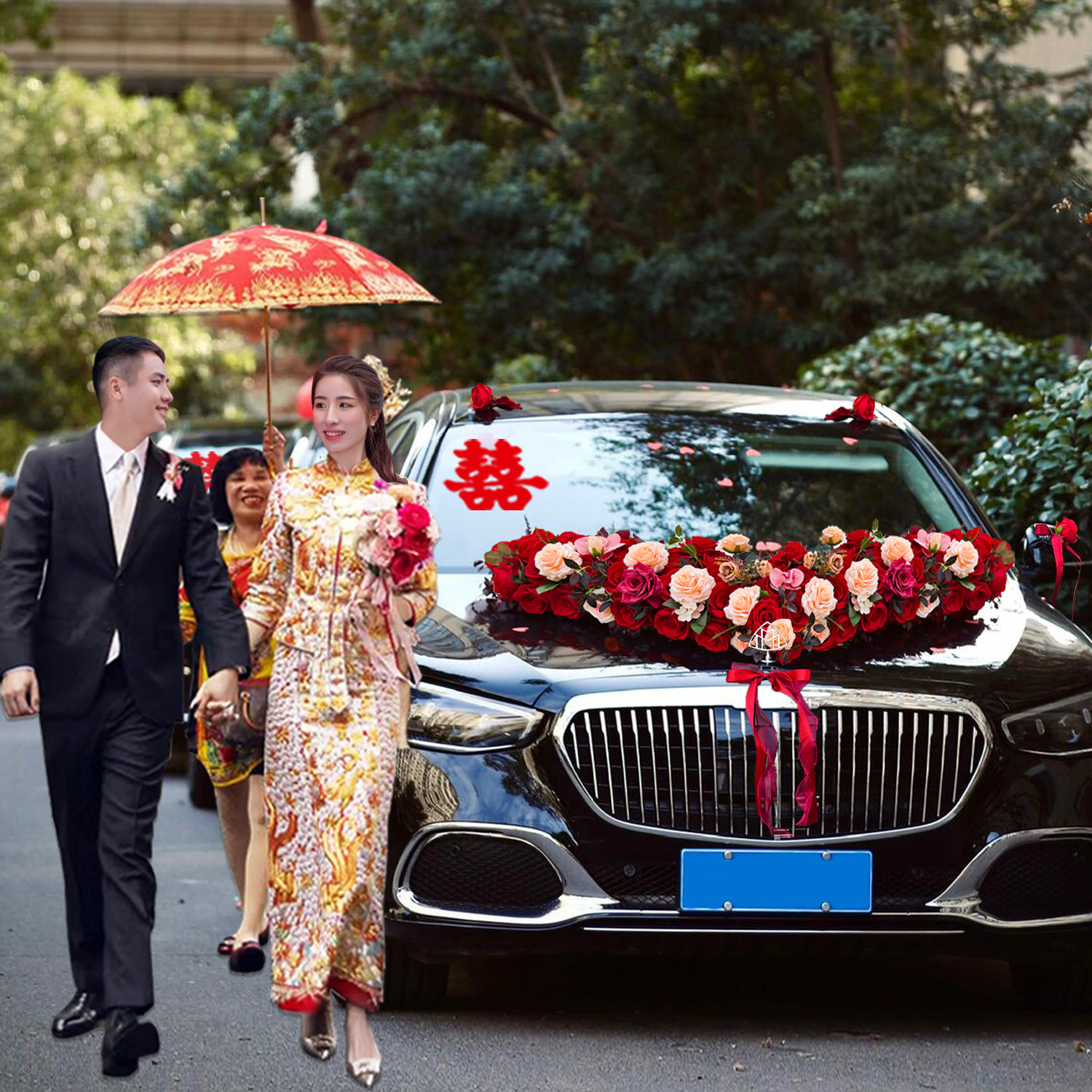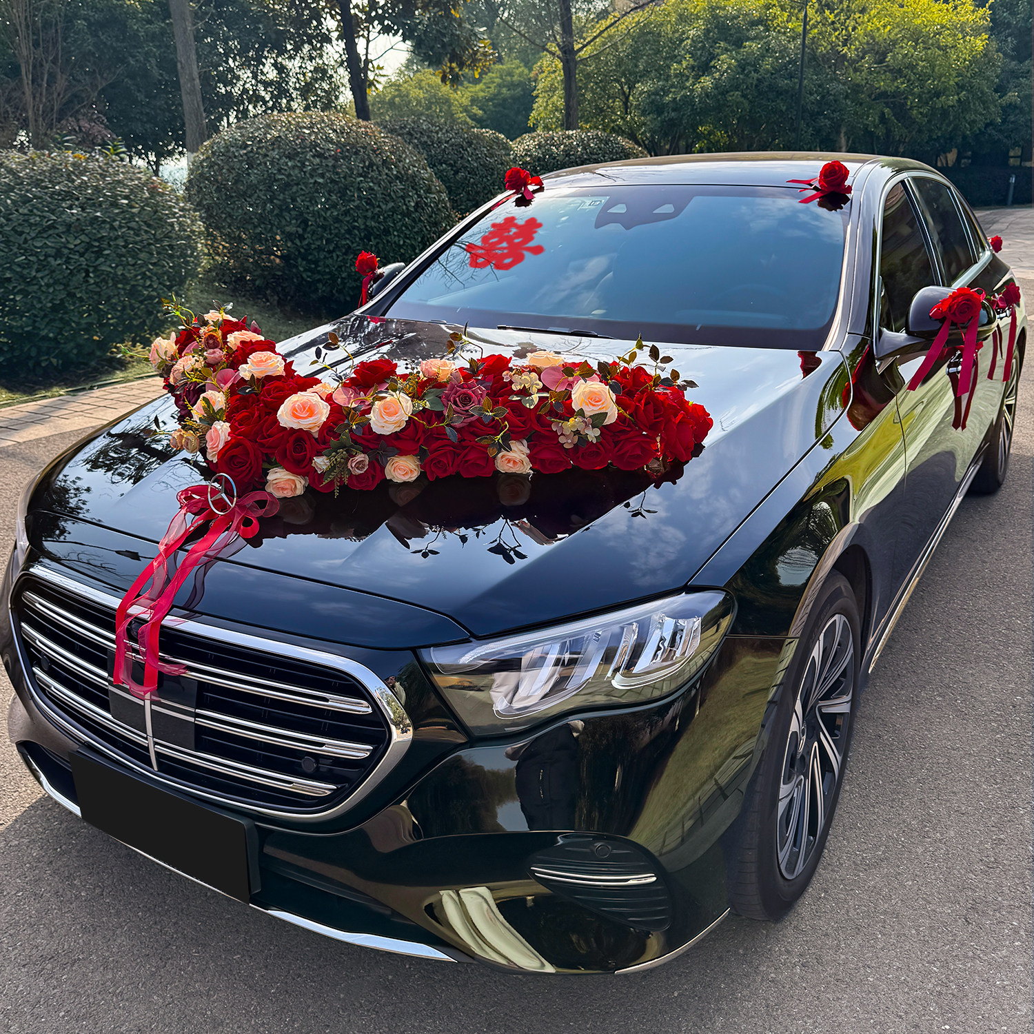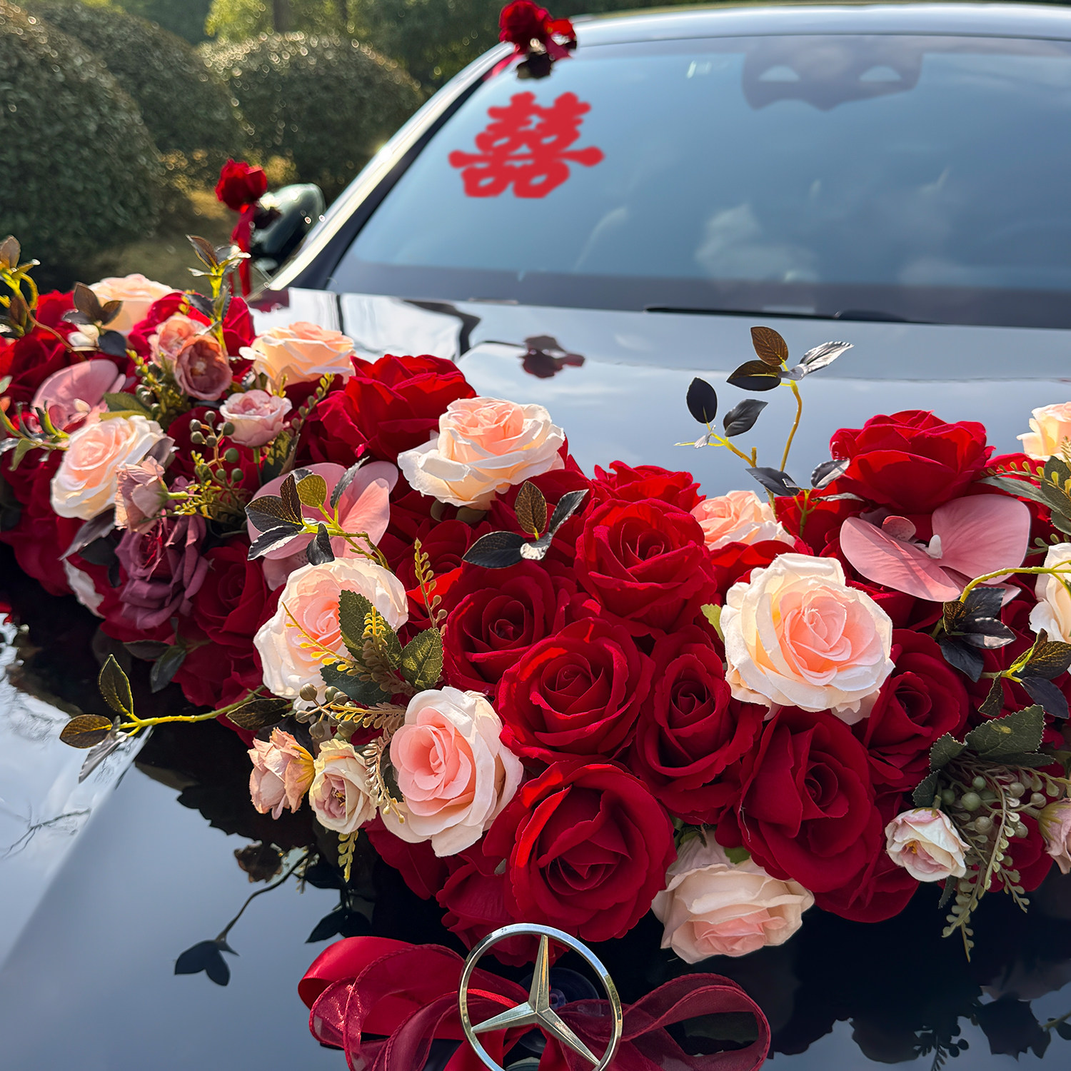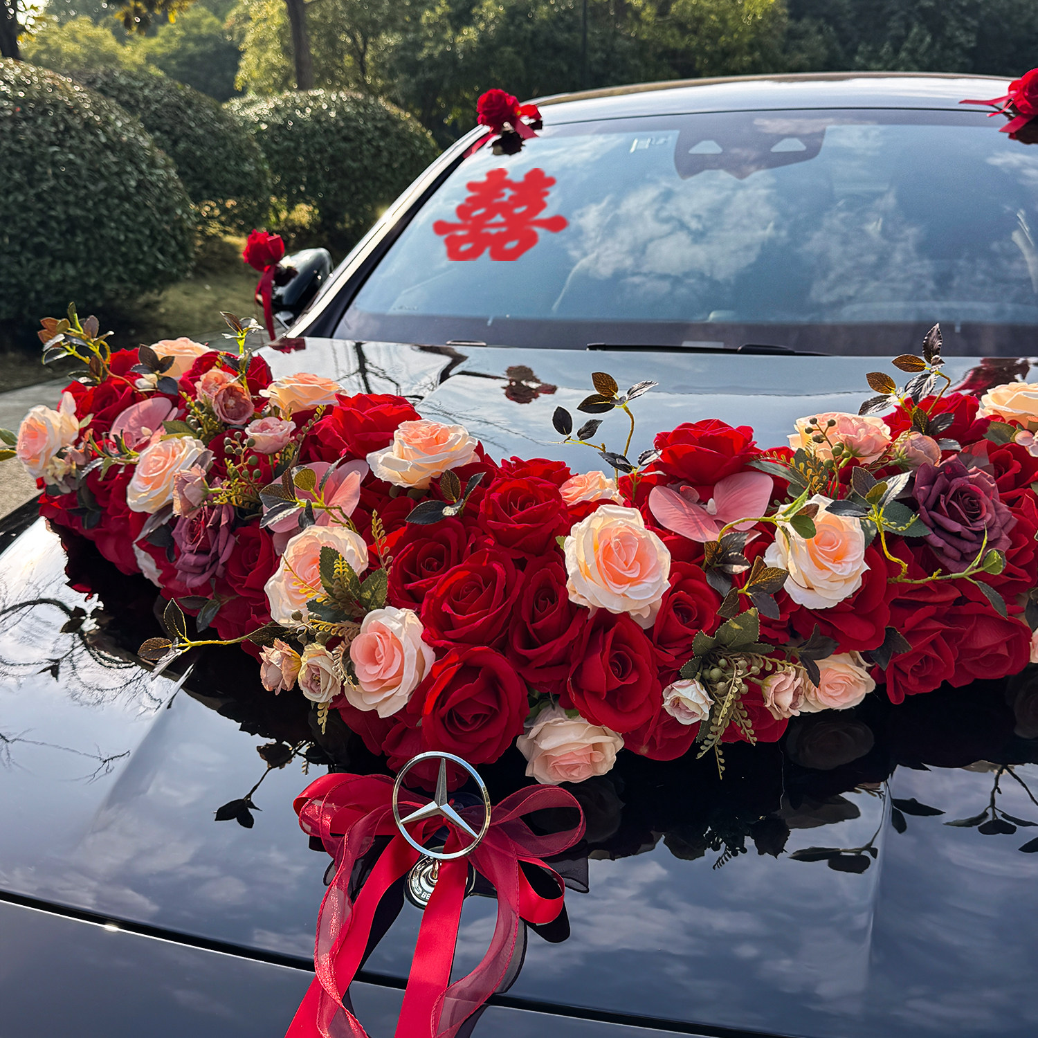 大V高级主婚车装 饰车头花花车拉花结婚布置头车花全套仿真花吸盘