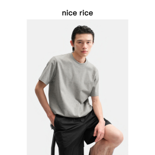 255G全棉花纱圆领宽松休闲短袖 夏季 T恤男NHX02095 rice好饭 nice