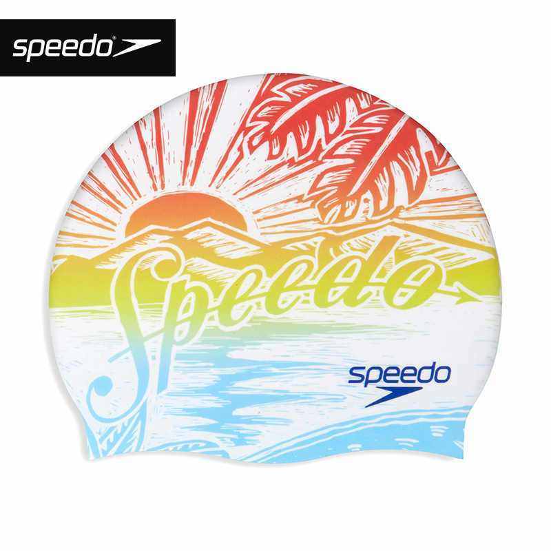 Speedo 印花不勒头硅胶防水游泳帽 速比涛泳帽男女Pride泳帽时尚