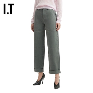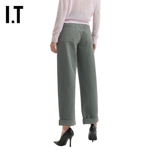 弹力修身 女装 EP雅莹2025冬装 加绒微喇牛仔裤 三明治鹅绒