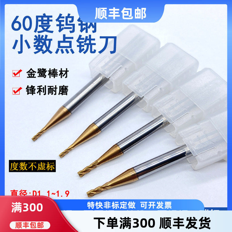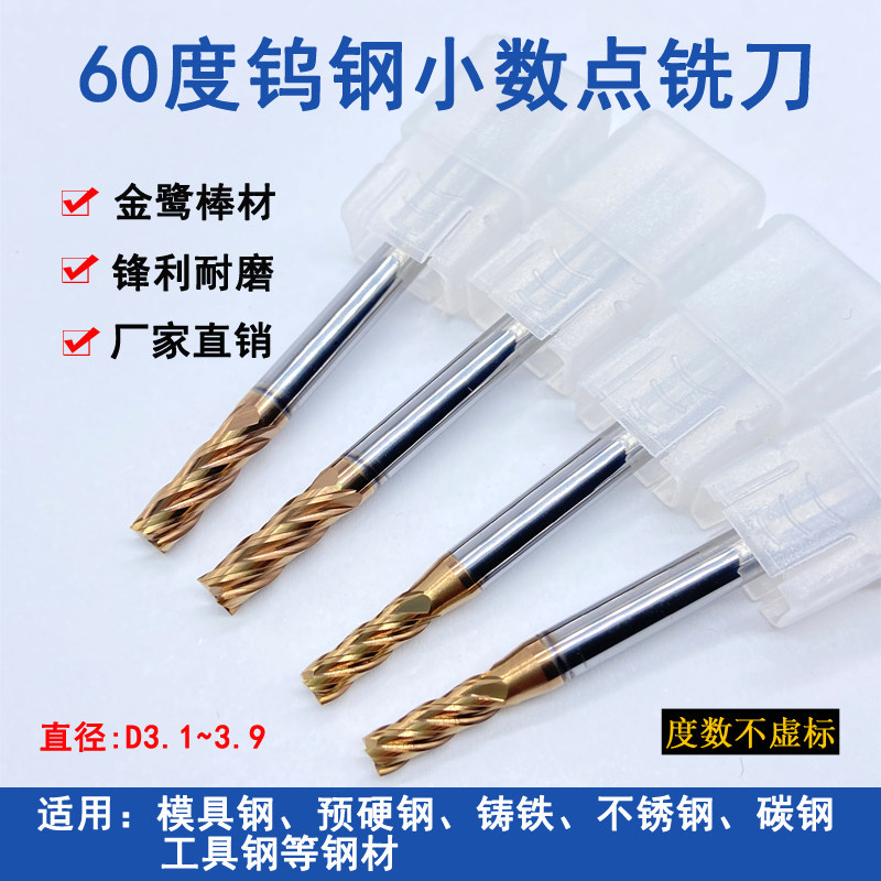小数点铣刀60度整体合金钨钢不锈钢模具钢涂层加硬1.05 3.95mm