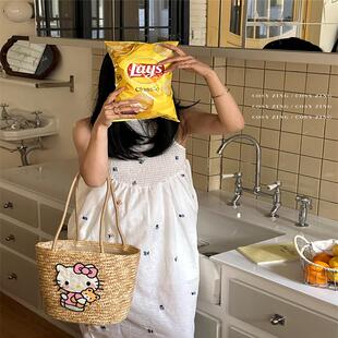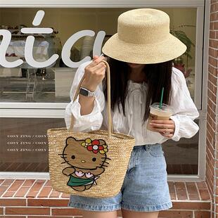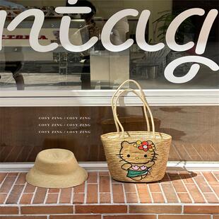 夏季 编织手提单肩包 度假黑皮kt女大容量Kitty手工diy通勤2025新款