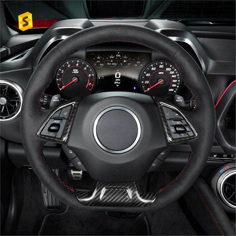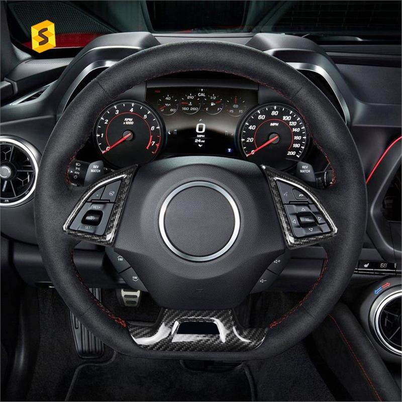 莎莎碳纤维适用于雪佛兰科迈罗方向盘按键框碳纤维按键贴装 饰贴片
