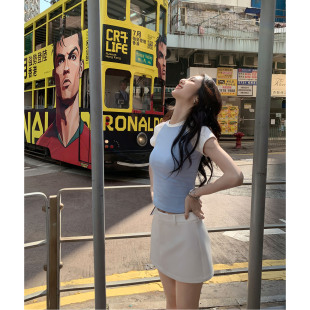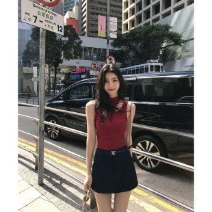 裤 深蓝色遮跨显瘦半身裙女设计感防止走光短款 裙 百搭出圈 MULVAN