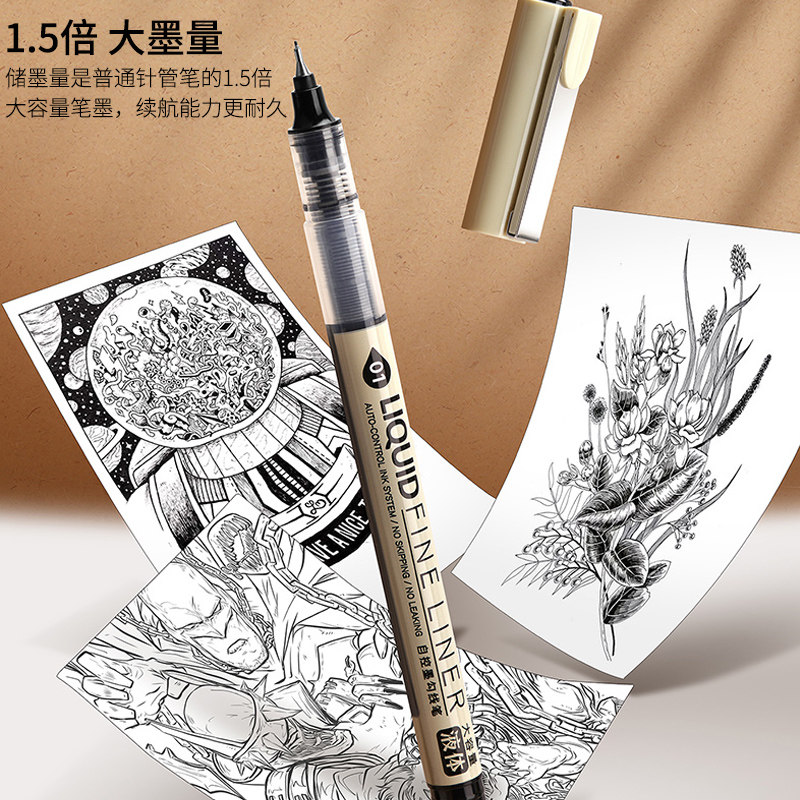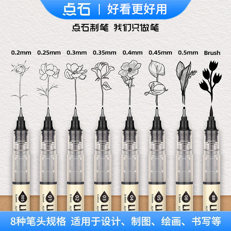 点石针管笔美术生专用速干勾线笔套装 黑色绘图笔大容量描线手绘笔ins日系漫画学生动漫用笔画笔704 直液式