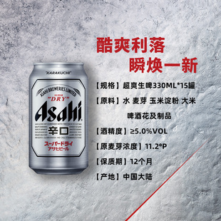 15罐整箱胖东来 Asahi朝日啤酒超爽生啤酒330ml 10.9度 日常