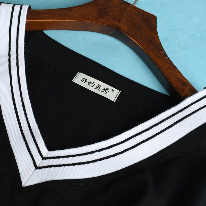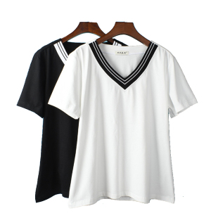 超肥特大码 T恤女夏胖子宽松上衣 300斤加肥加大V领体恤230胖mm短袖