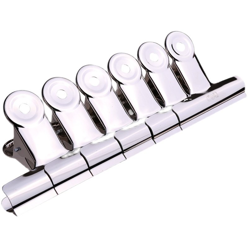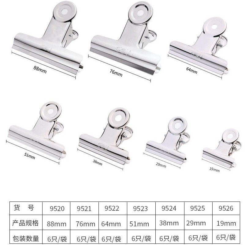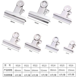 大号不锈钢夹子中号小号铁票据夹9521系列 得力圆形票夹 6只 袋