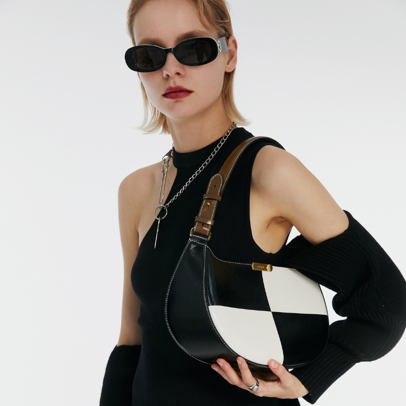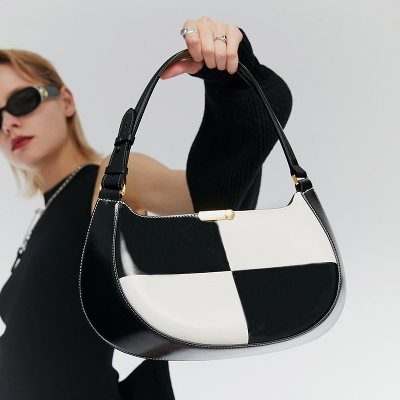 IAMNOT小众腋下包手提包原创棋盘格包包高级感轻奢黑白拼色熊猫包