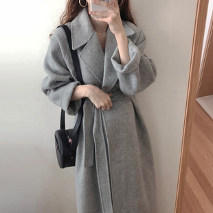 慵懒风双面羊毛大衣女中长款 灰色毛呢外套高级感