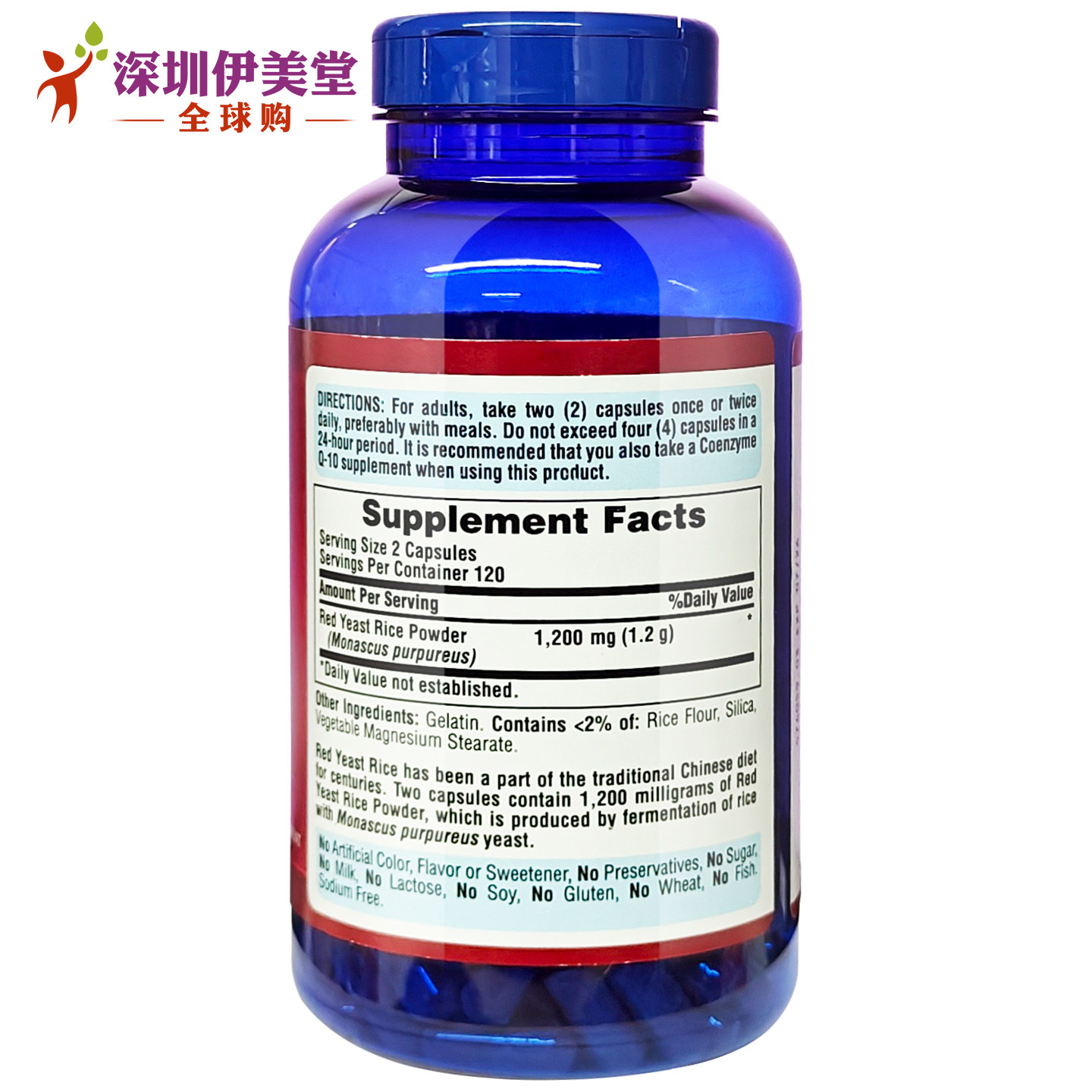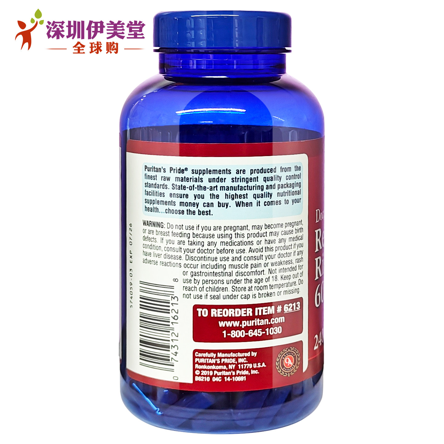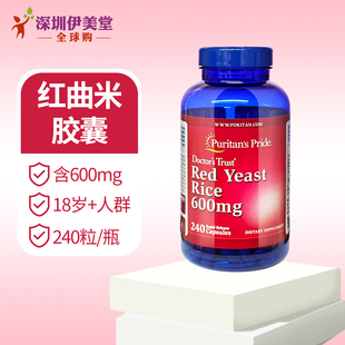 美国进口普丽普莱红曲米胶囊600mg240粒 pride 红曲胶囊Puritans