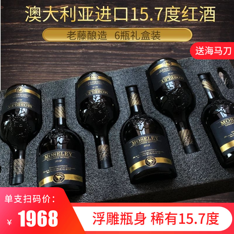 澳洲进口红酒15.7度正品 袋鼠干红西拉果香整箱6支750ml红酒礼盒装