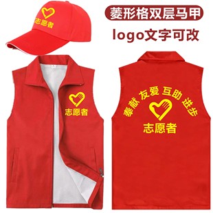 党员志愿者马甲定制公益义工活动服装 红色马甲背心工作服印字logo