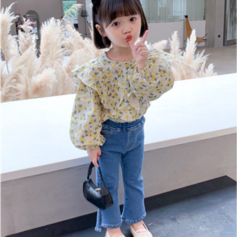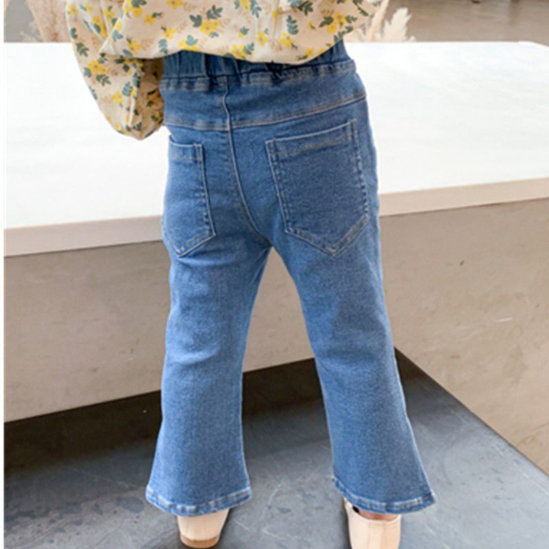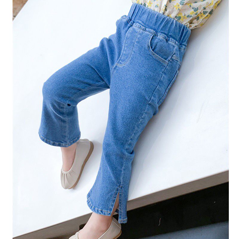 洋气儿童秋款 韩版 长裤 女宝宝秋季 潮 小童春装 时髦开叉喇叭裤 牛仔裤