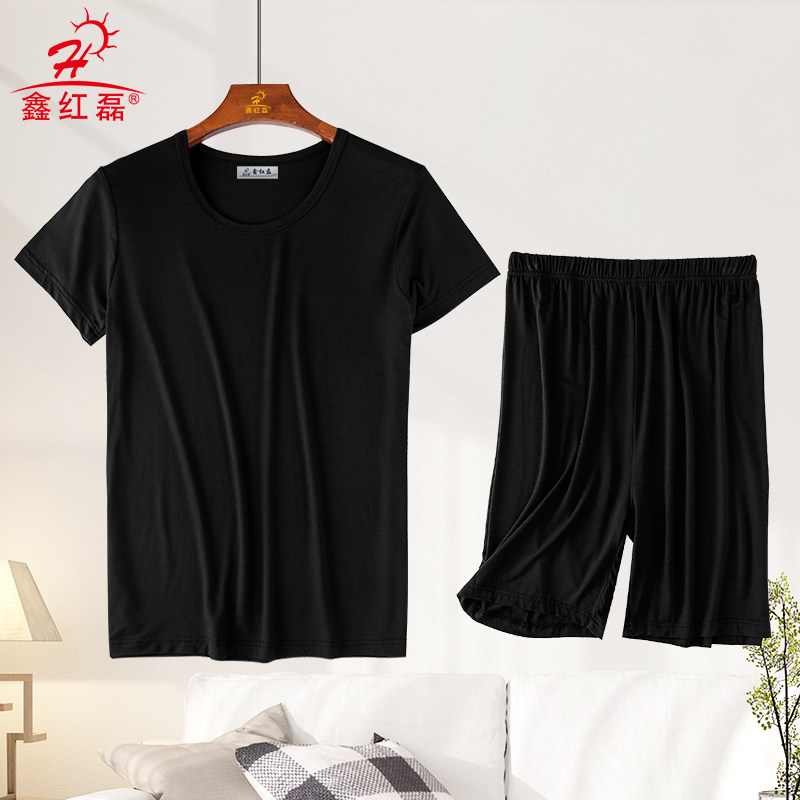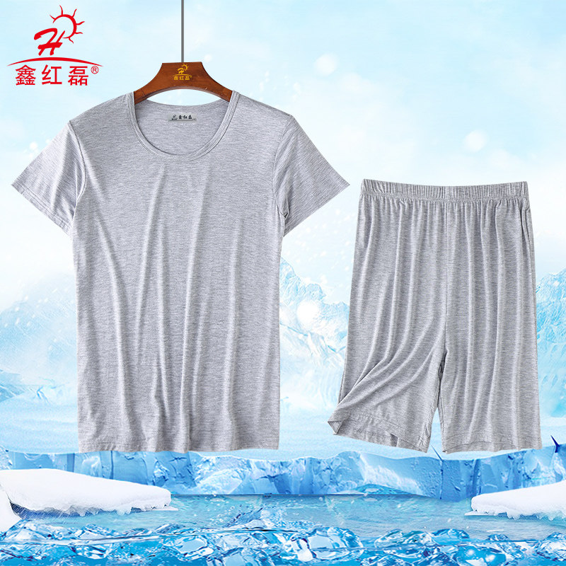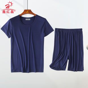 休闲加肥加大码 莫代尔夏男短袖 宽松薄款 套装 家居服睡衣中老年 短裤